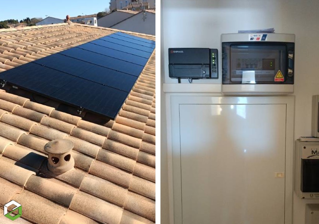 Chacun des panneaux fonctionne avec un micro-onduleur ENPHASE IQ8M, garantissant une production individualisée et optimisée pour chaque module. Cette configuration permet d’éviter les pertes liées aux ombrages partiels ou aux différences d’orientation, tout en offrant un suivi de production précis via une application mobile.
