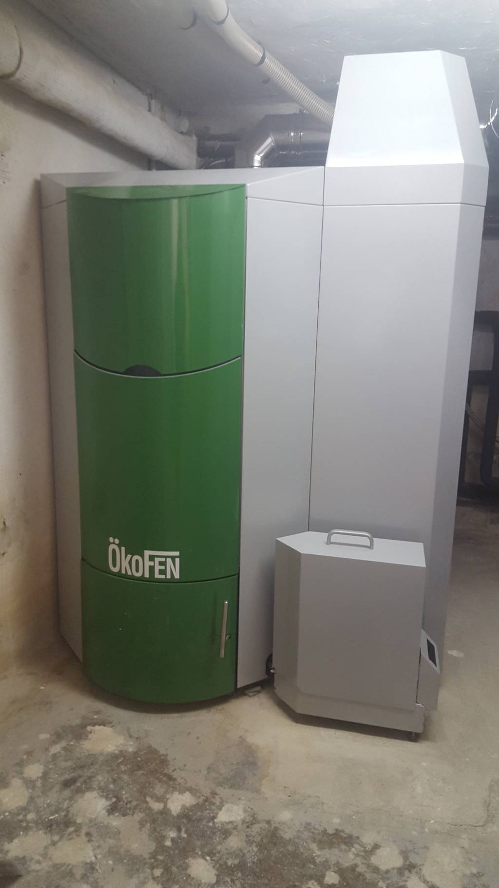 L’installation comprend deux chaudières à granulés de bois Ökofen, chacune d’une puissance de 56 kW, reconnues pour leur haut rendement et leur fiabilité. Ces chaudières bénéficient d’une régulation performante qui assure un confort thermique optimal tout en maîtrisant les coûts de fonctionnement.